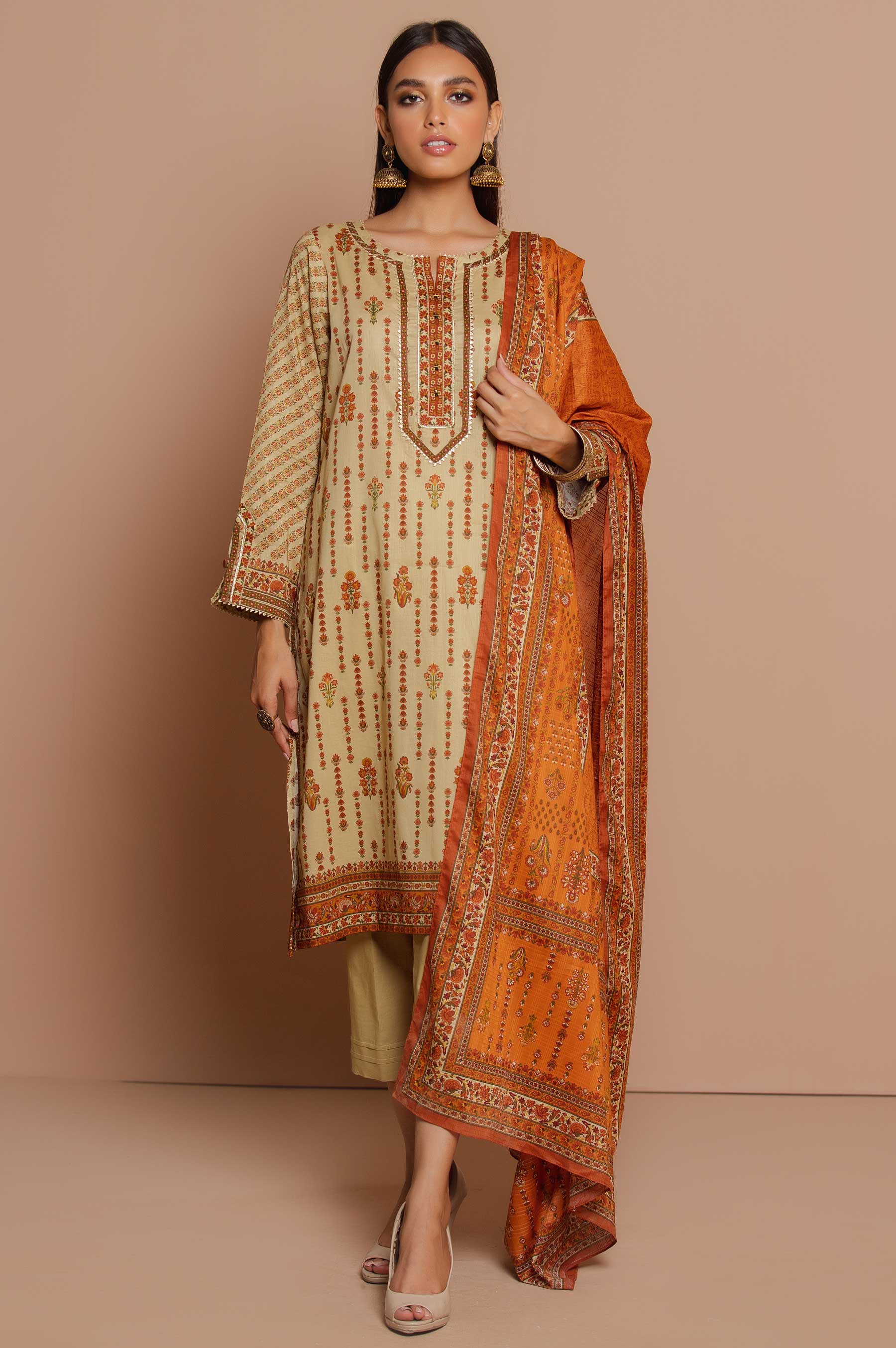 2.5 Meters Printed Doria Lawn Shirt , 2.5 Meters Printed Voile Slub Dupatta, 2 Meters Dyed Cambric Bottom