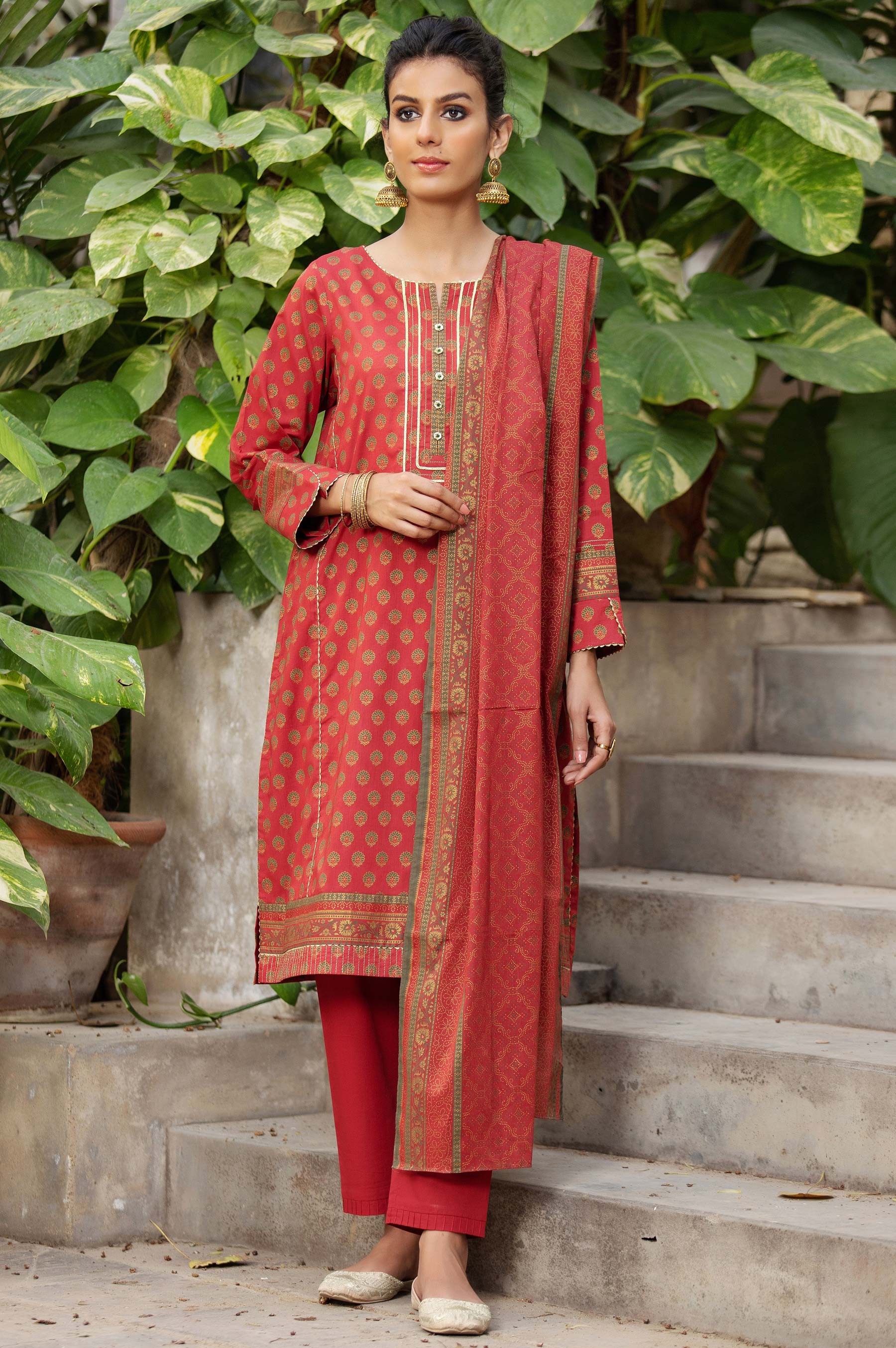 Unstitched 3 Piece Printed Gold & Colored Paste Lawn Suit