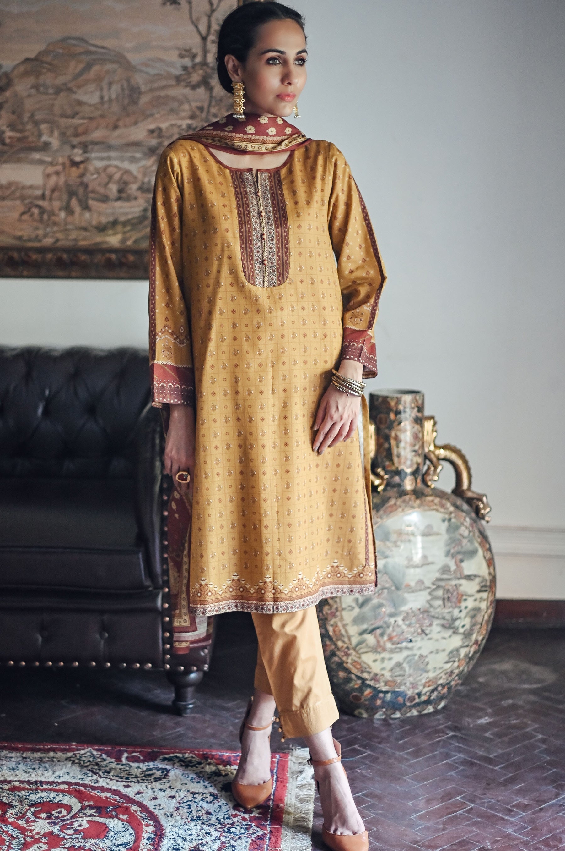 2.5 Meters Printed Karandi Shirt, 2.5 Meters Printed Karandi Dupatta, 2 Meters Dyed Karandi Bottom