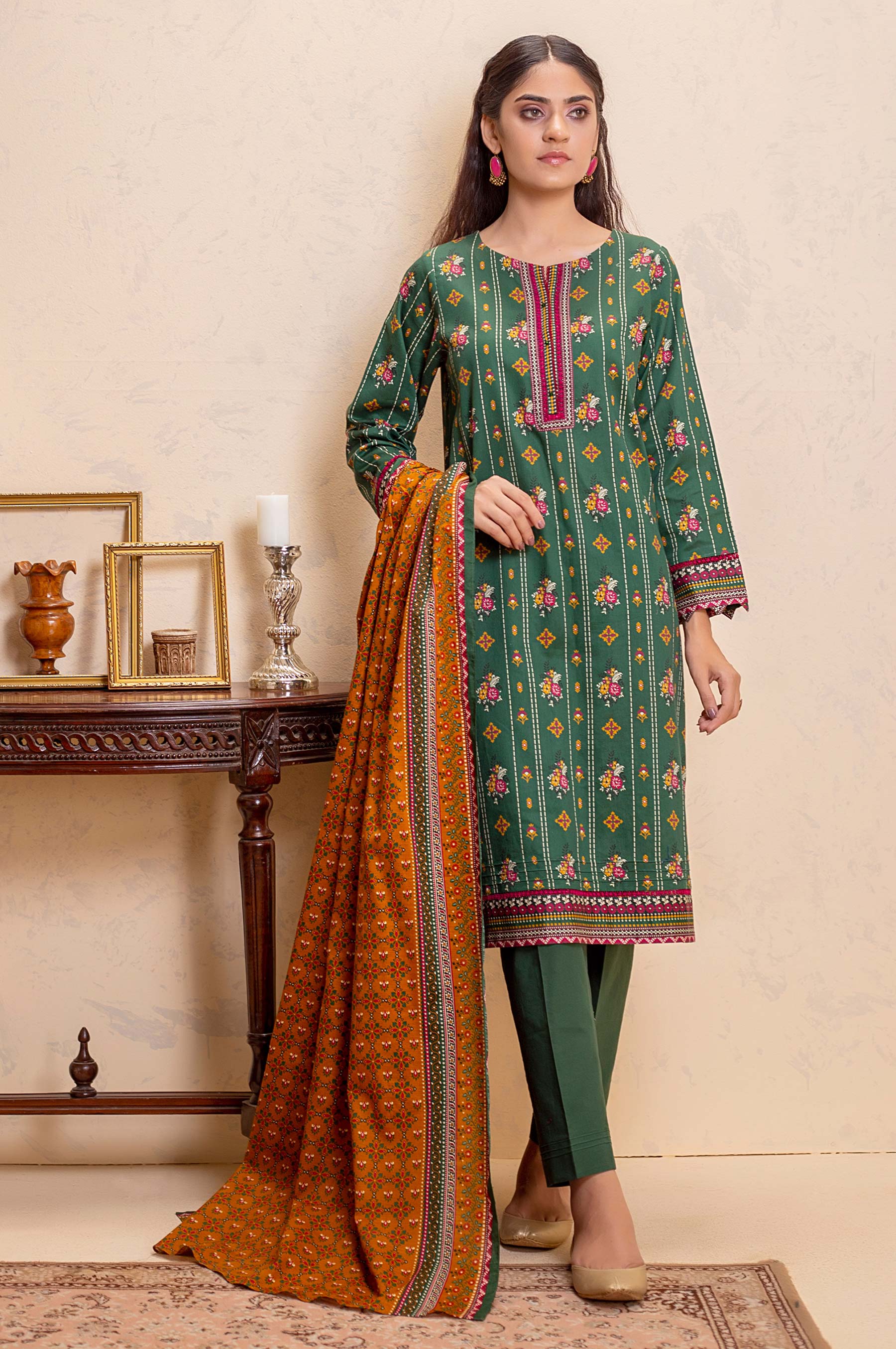 2.5 Meters Printed Khaddar Shirt,2.5 Meters Printed Khaddar Dupatta,2 Meters Dyed Khaddar Bottom.