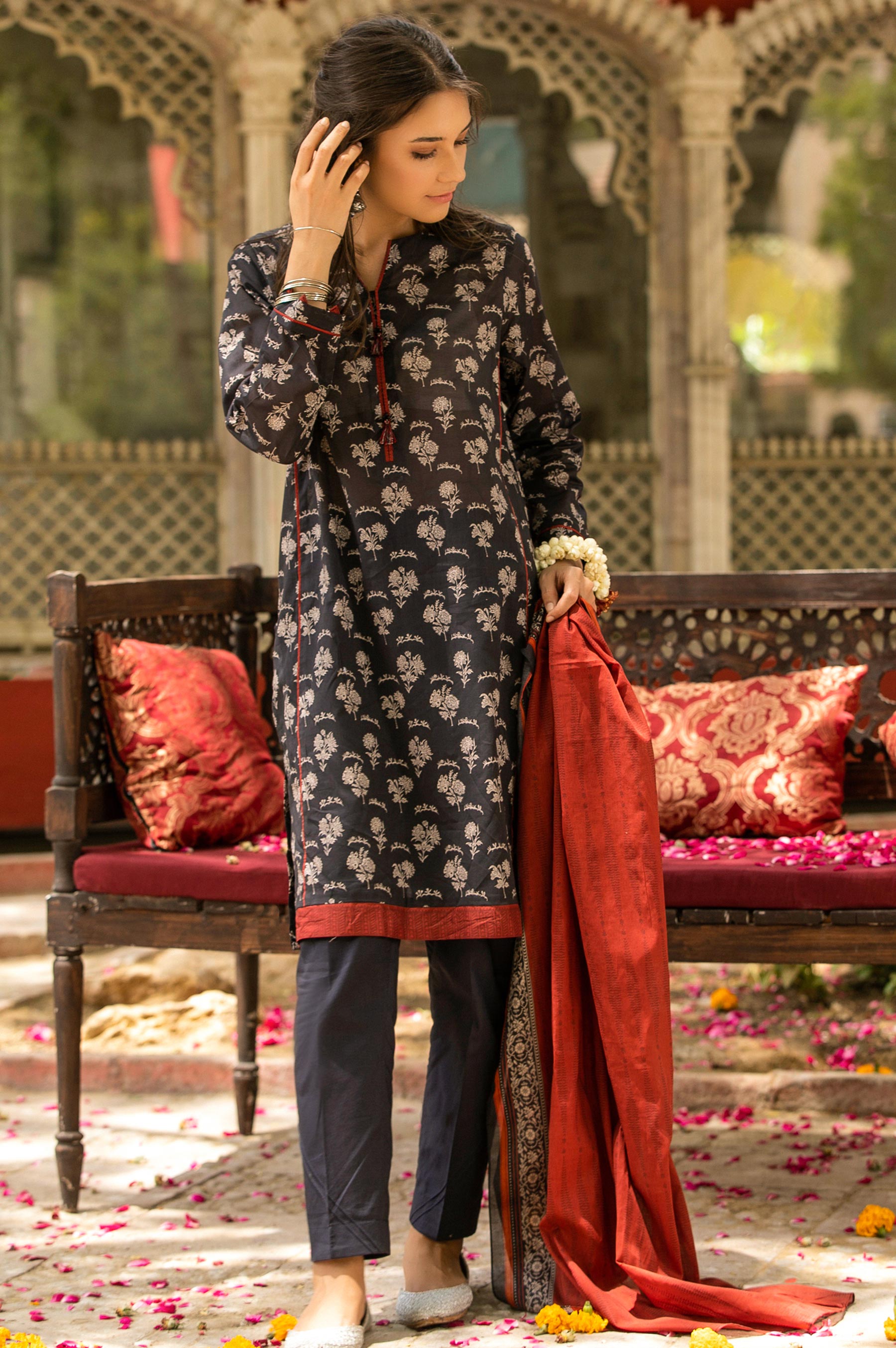 2.5 Meters Printed Lawn Shirt, 2 Meters Dyed Cambric Bottom, 2.5 Meters Printed Lawn Dupatta