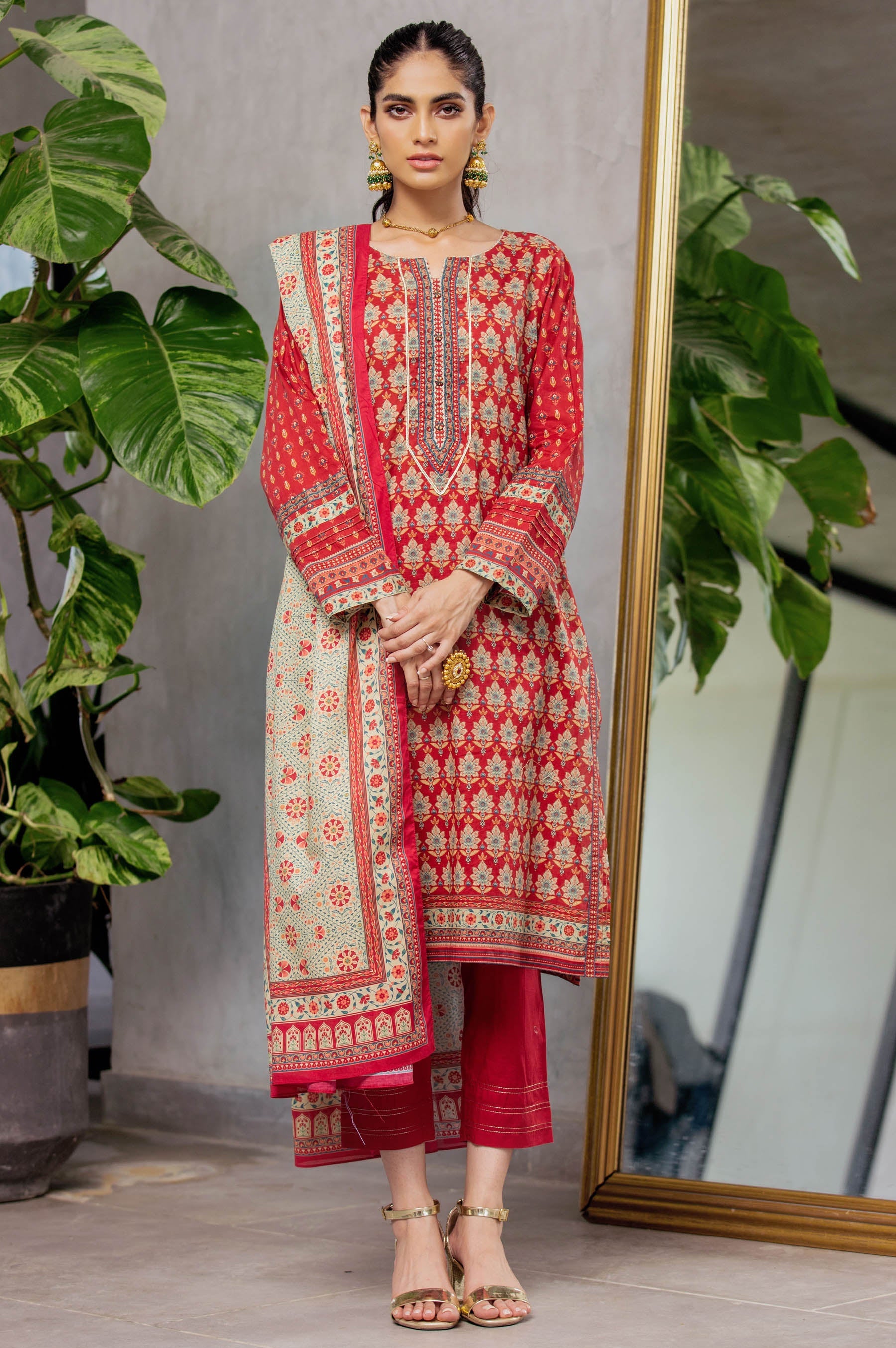 2.5 Meters Printed Lawn Shirt, 2.5 Meters Printed Lawn Dupatta, 2 Meters Dyed Cambric Bottom