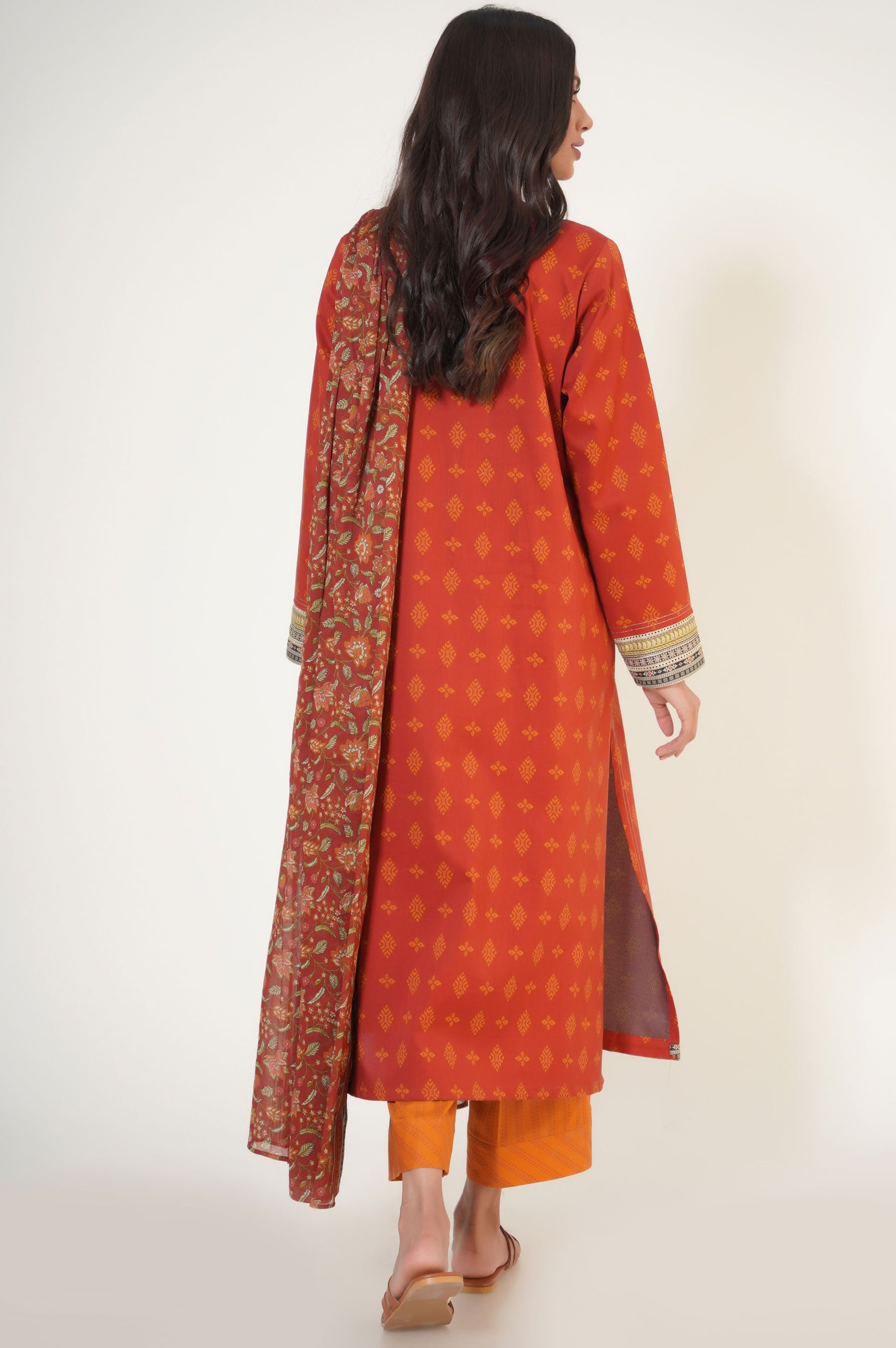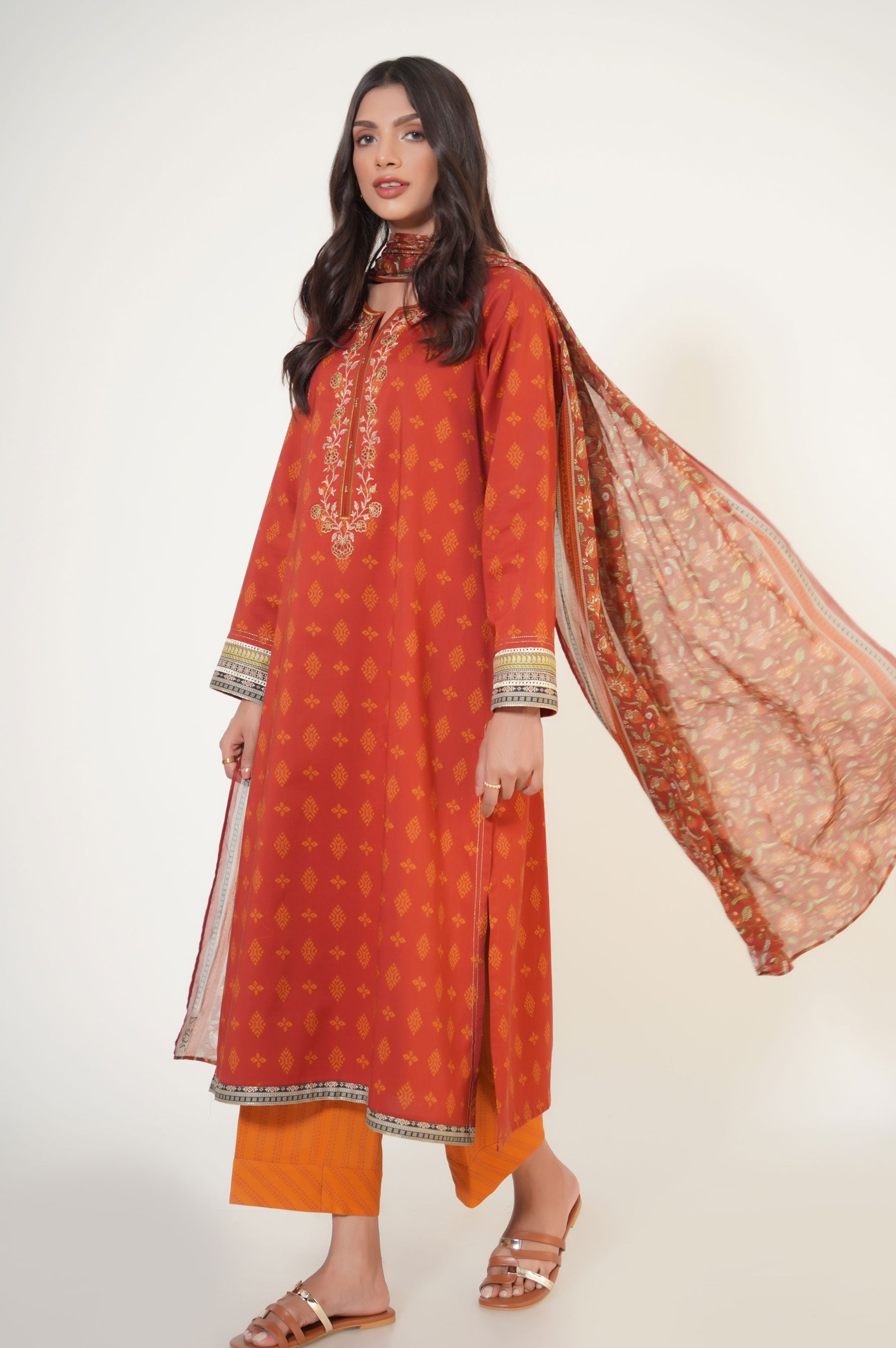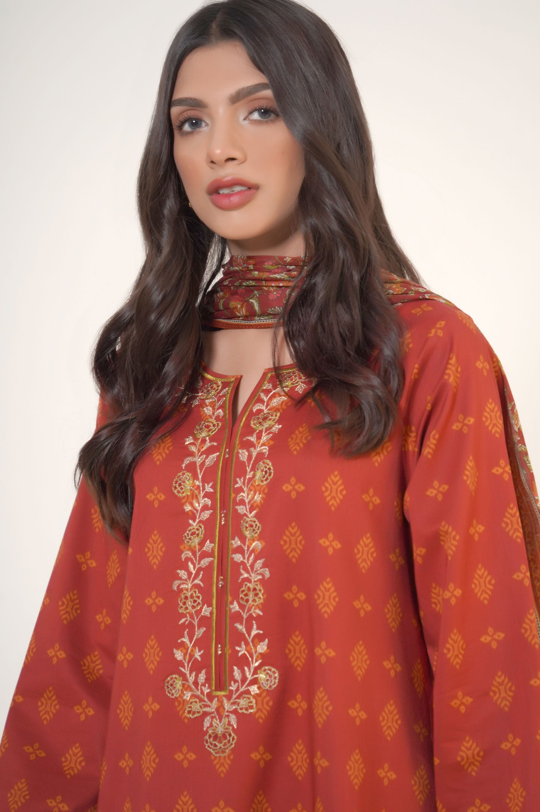 A classically chic design rendered in a rich traditional color palette, adorned with indian pattern dupatta fused with ikat patterns. This exquisite dress is perfect for Eid vibes.