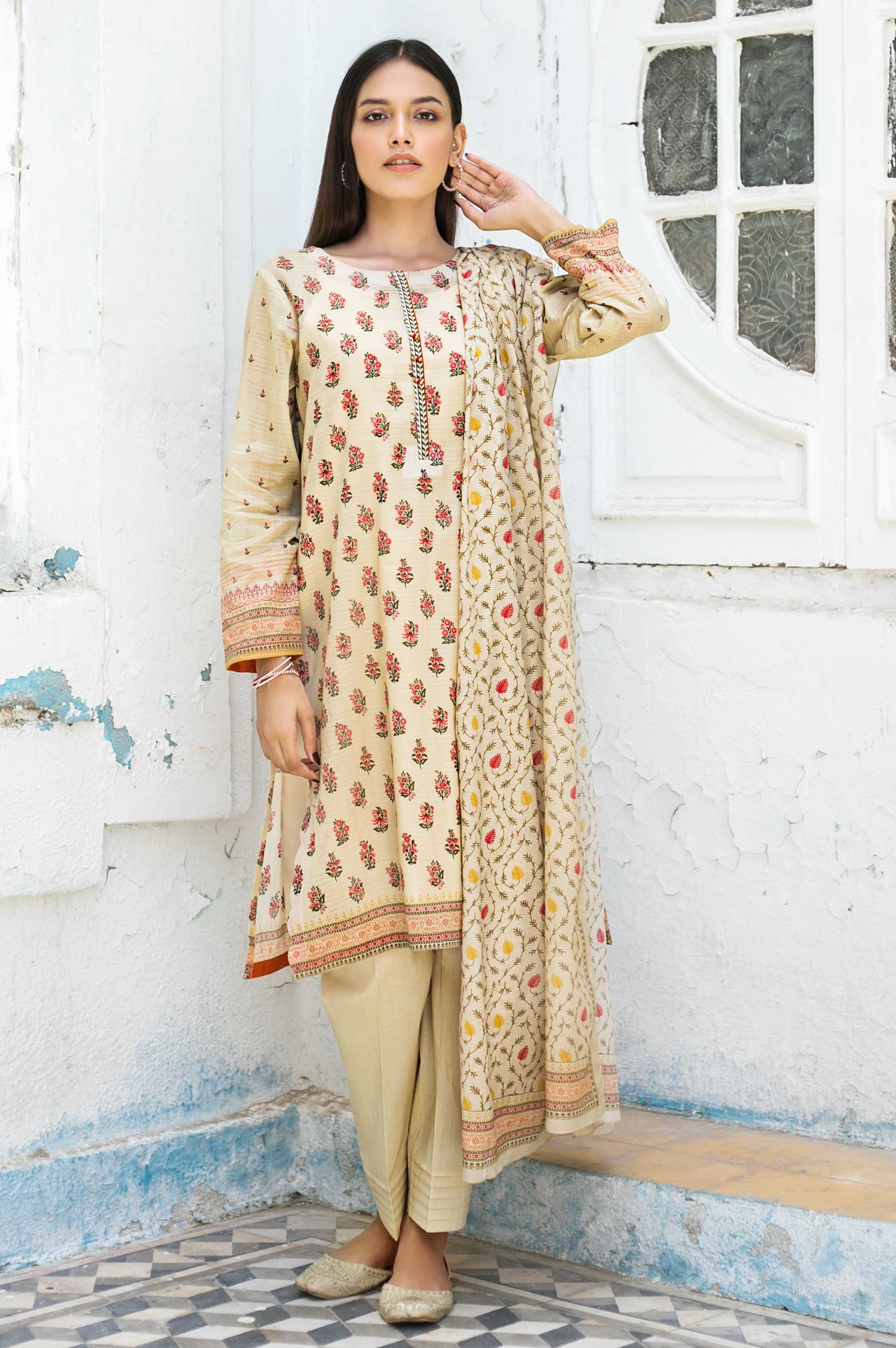 2.5 Meters Printed Slub Lawn Shirt, 2 Meters Dyed Cambric Bottom, 2.5 Meters Printed Lawn Dupatta