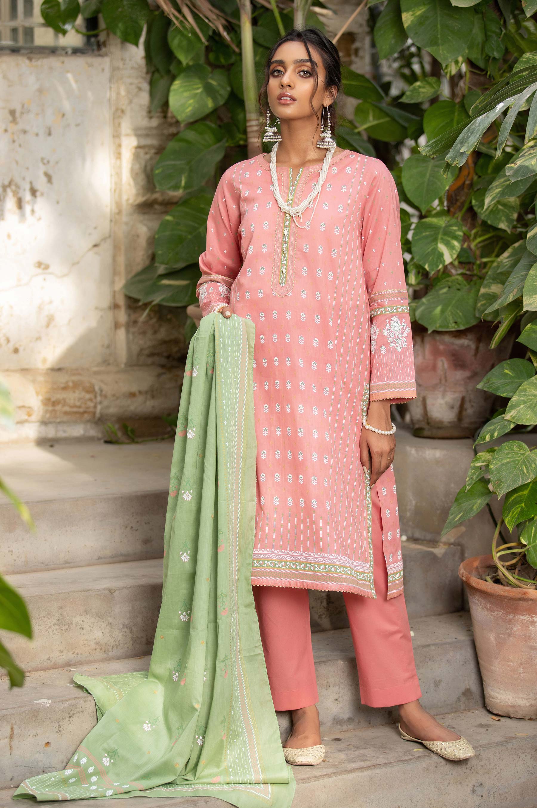 2.5 Meters Printed White Paste Lawn Shirt, 2.5 Meters Printed White Paste Lawn Dupatta, 2 Meters Dyed Cambric Bottom