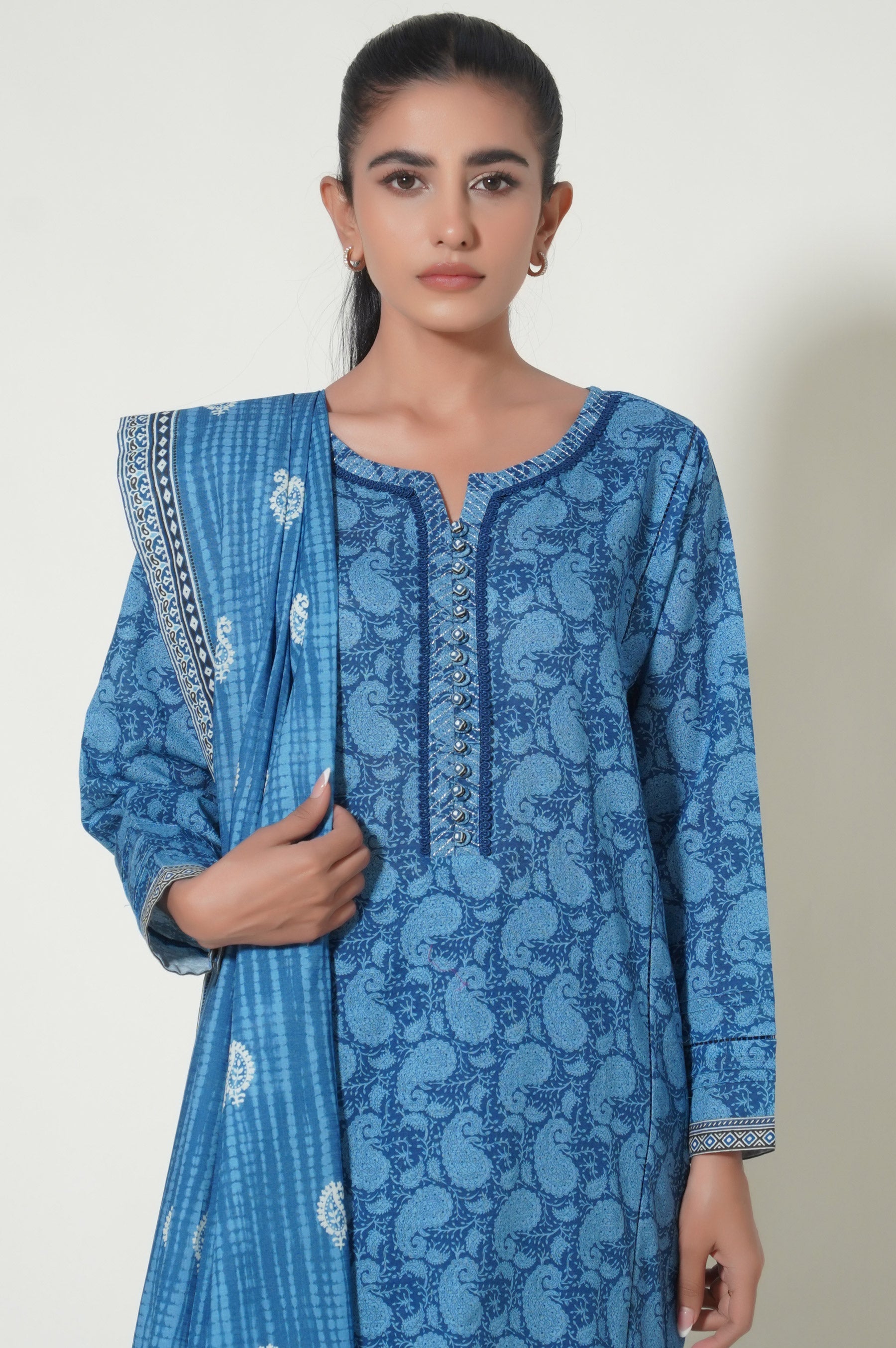 A casual outfit that features block motifs would be perfect for winter season. Paired with an elegant dupatta and a matching trouser.