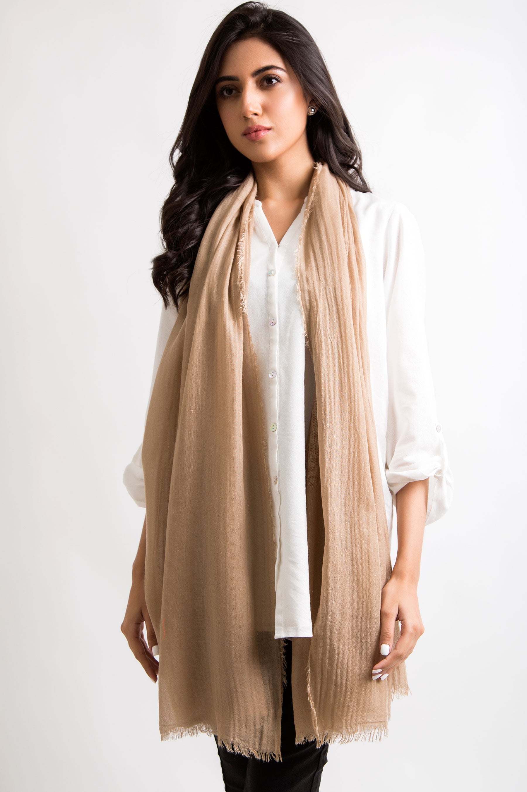Lustrous scarf with raw edges in a solid soft viscose is the perfect scarf for the day and evening.