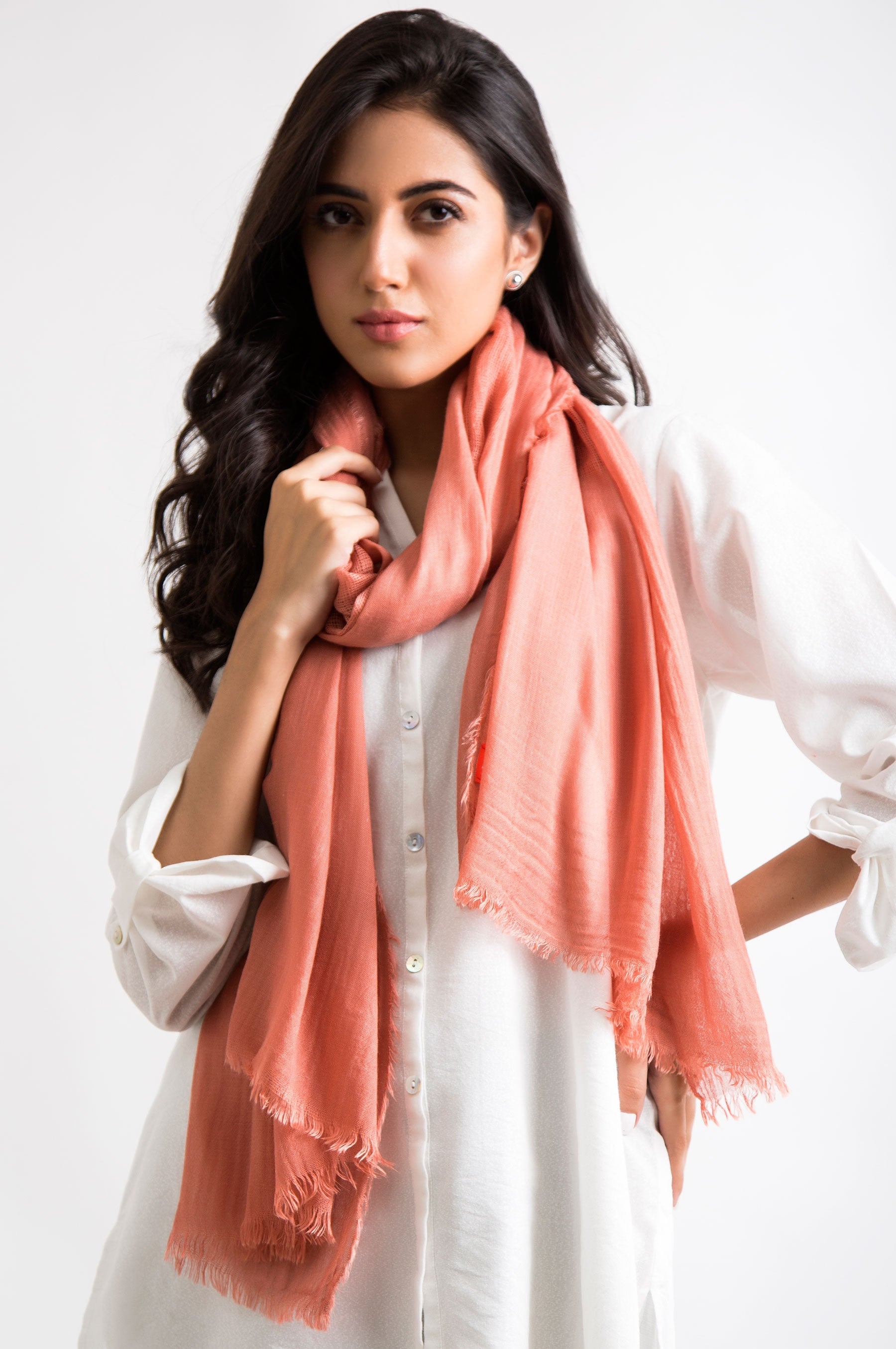 Lustrous scarf with raw edges in a solid soft viscose is the perfect scarf for the day and evening.