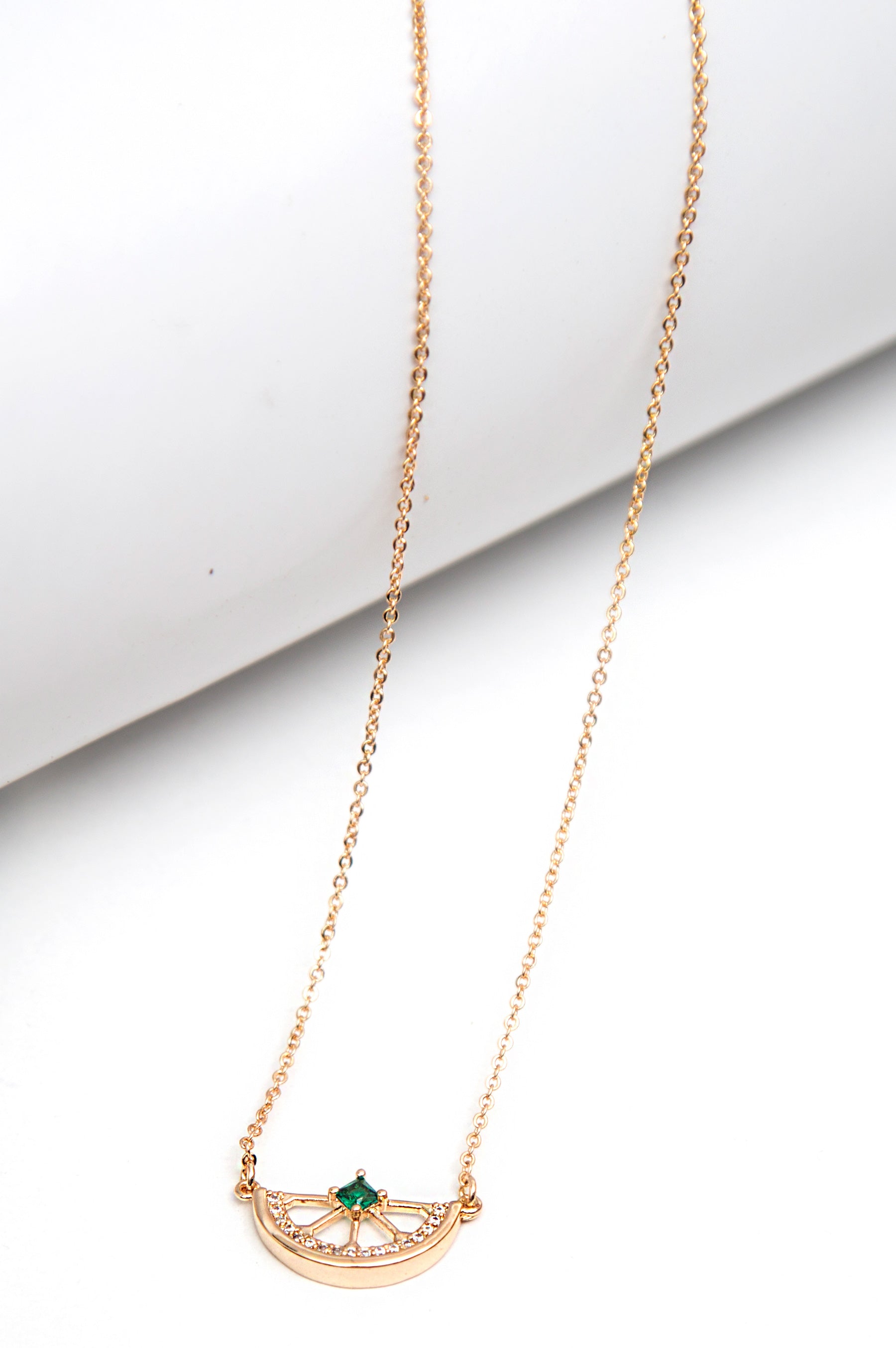 A little delight - watermelon shaped necklace with an emerald green cubic zirconia stone. This one is a conversation starter.