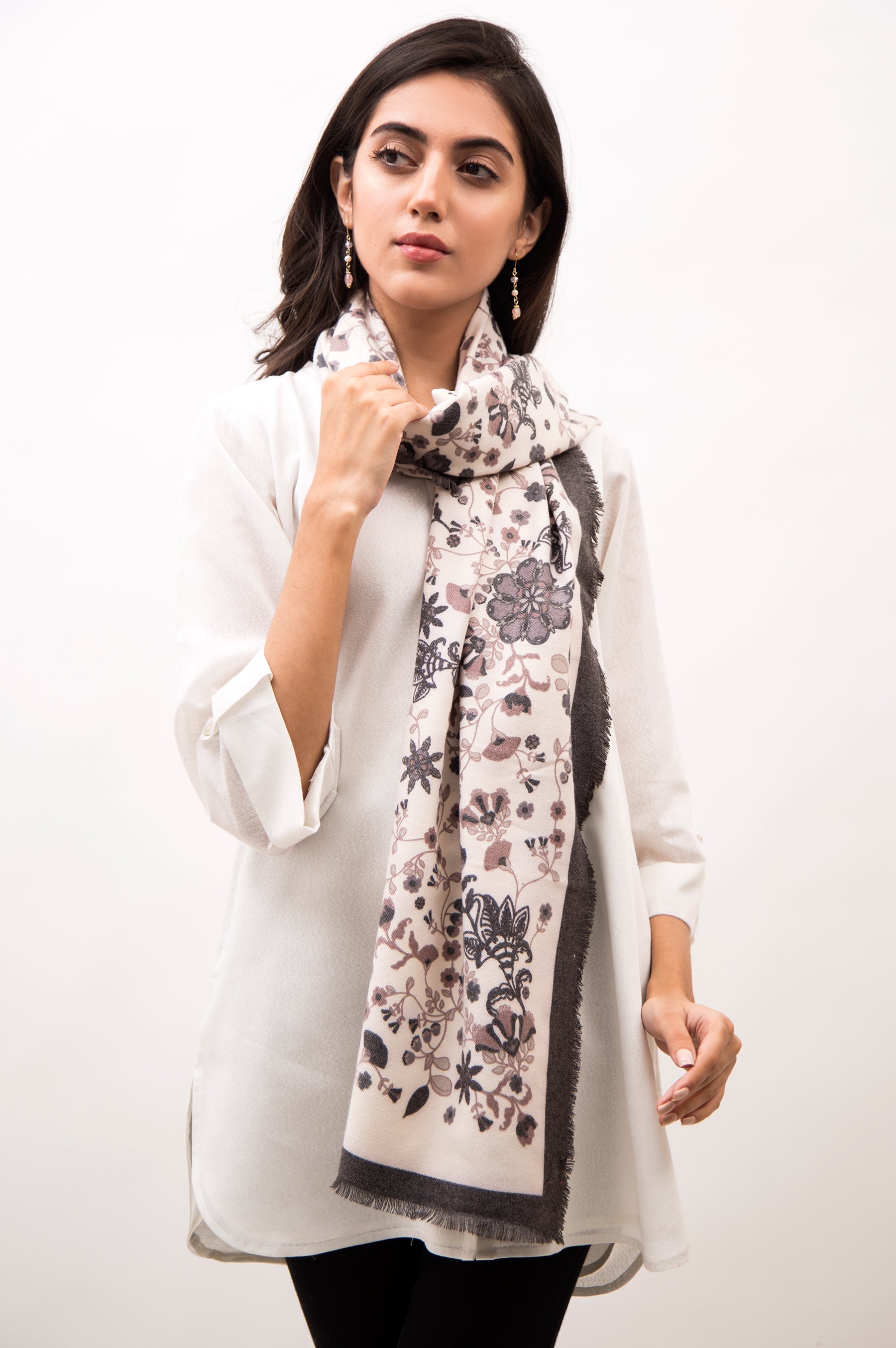 Floral patterns in grey giving a vintage feel stands out well against an off-white base.