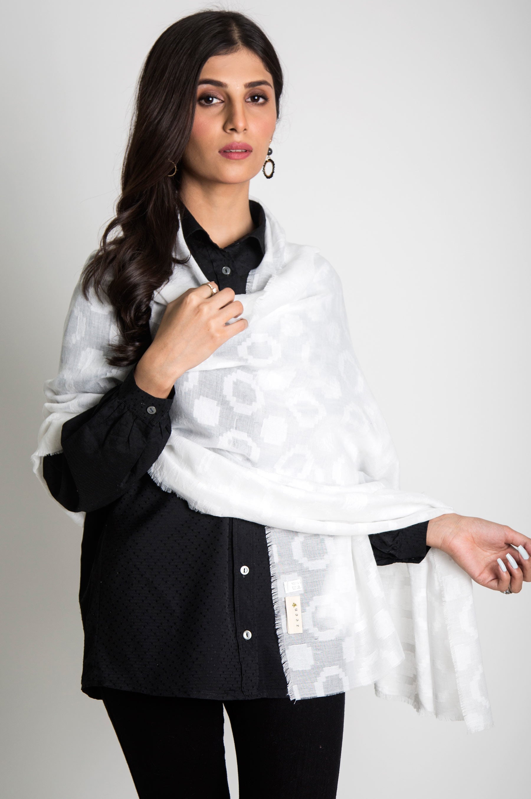 Subtle fringe makes a gorgeous scarf in sheer breathable fabric with cloudy texture, perfect for day or night event!