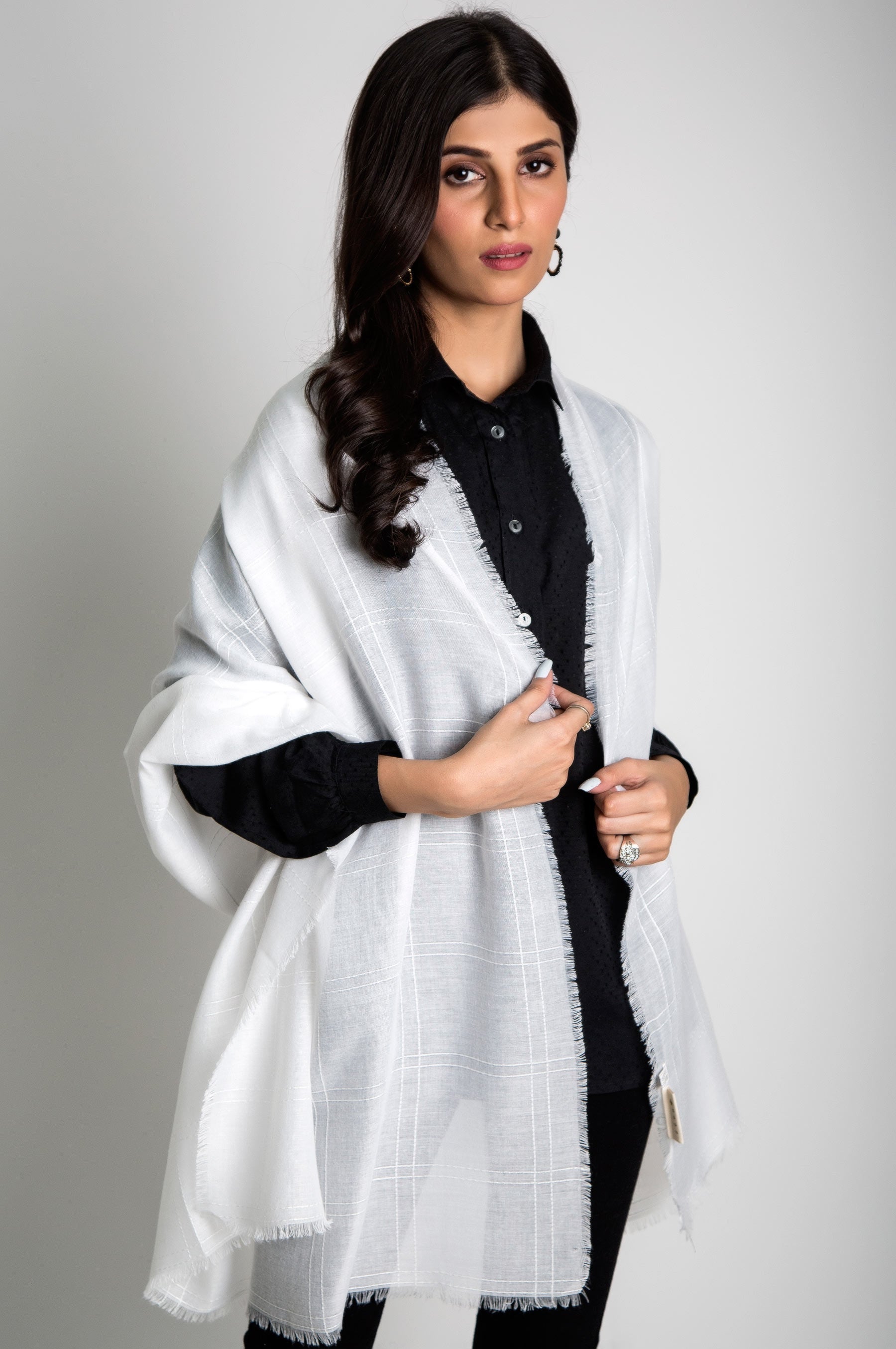 Subtle fringe makes a gorgeous scarf in sheer breathable fabric with texture, perfect for day or night event!