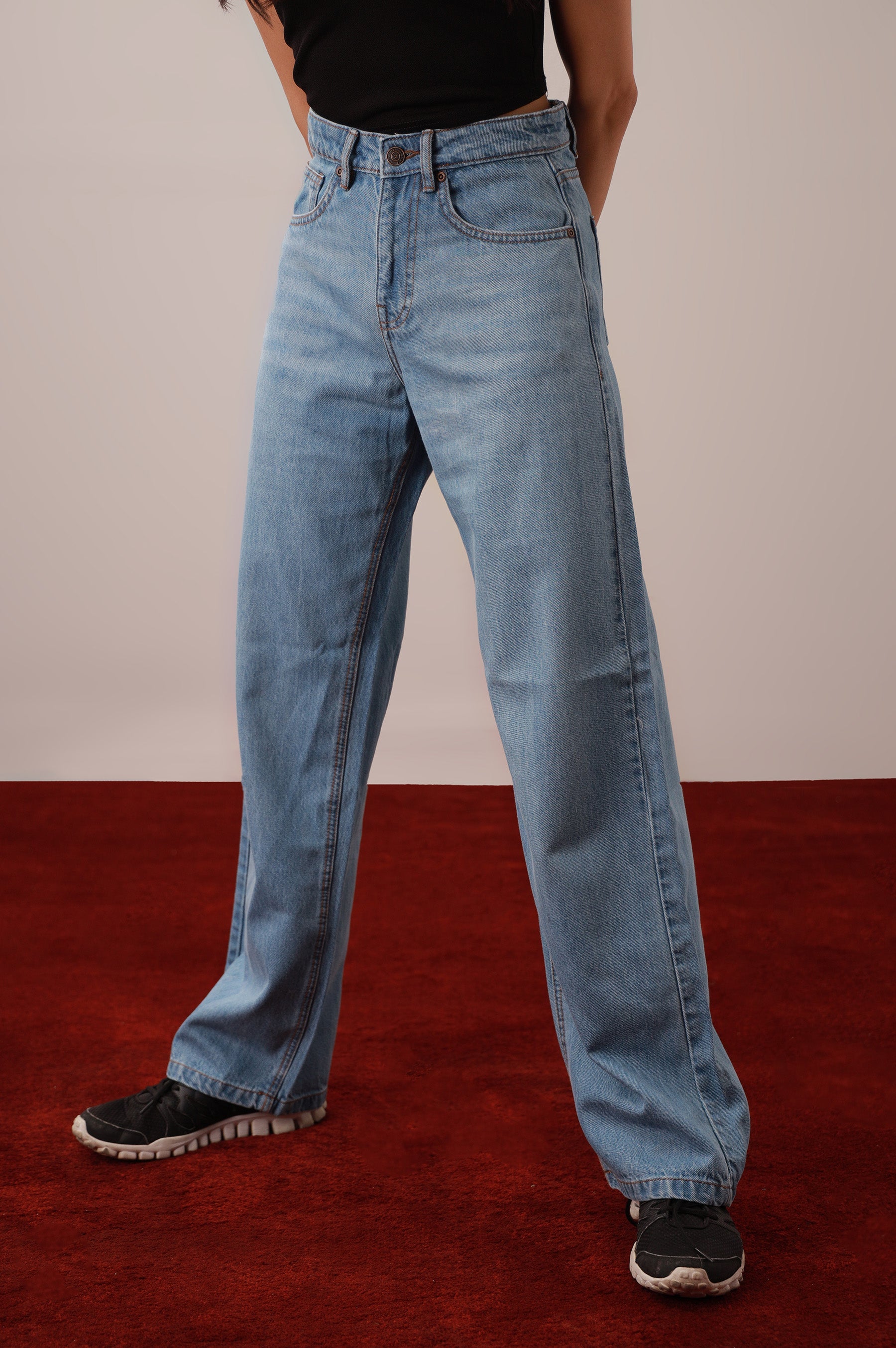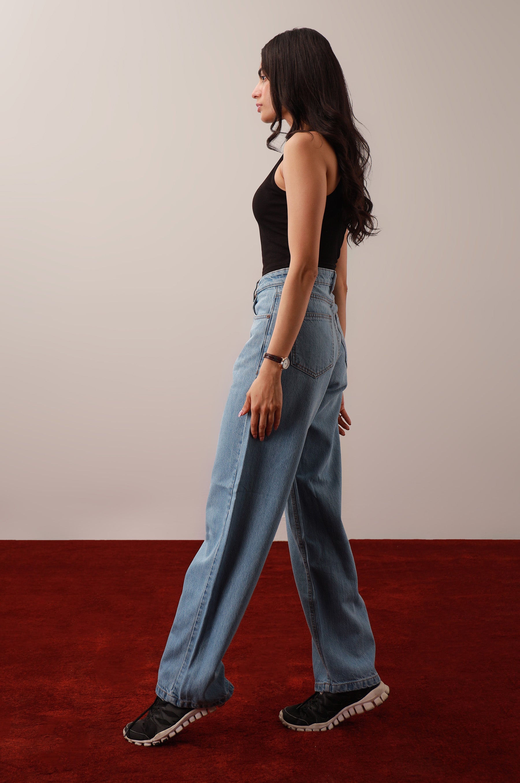 Denim Cotton Tencel Fabric. Light Blue wide leg Jeans.
