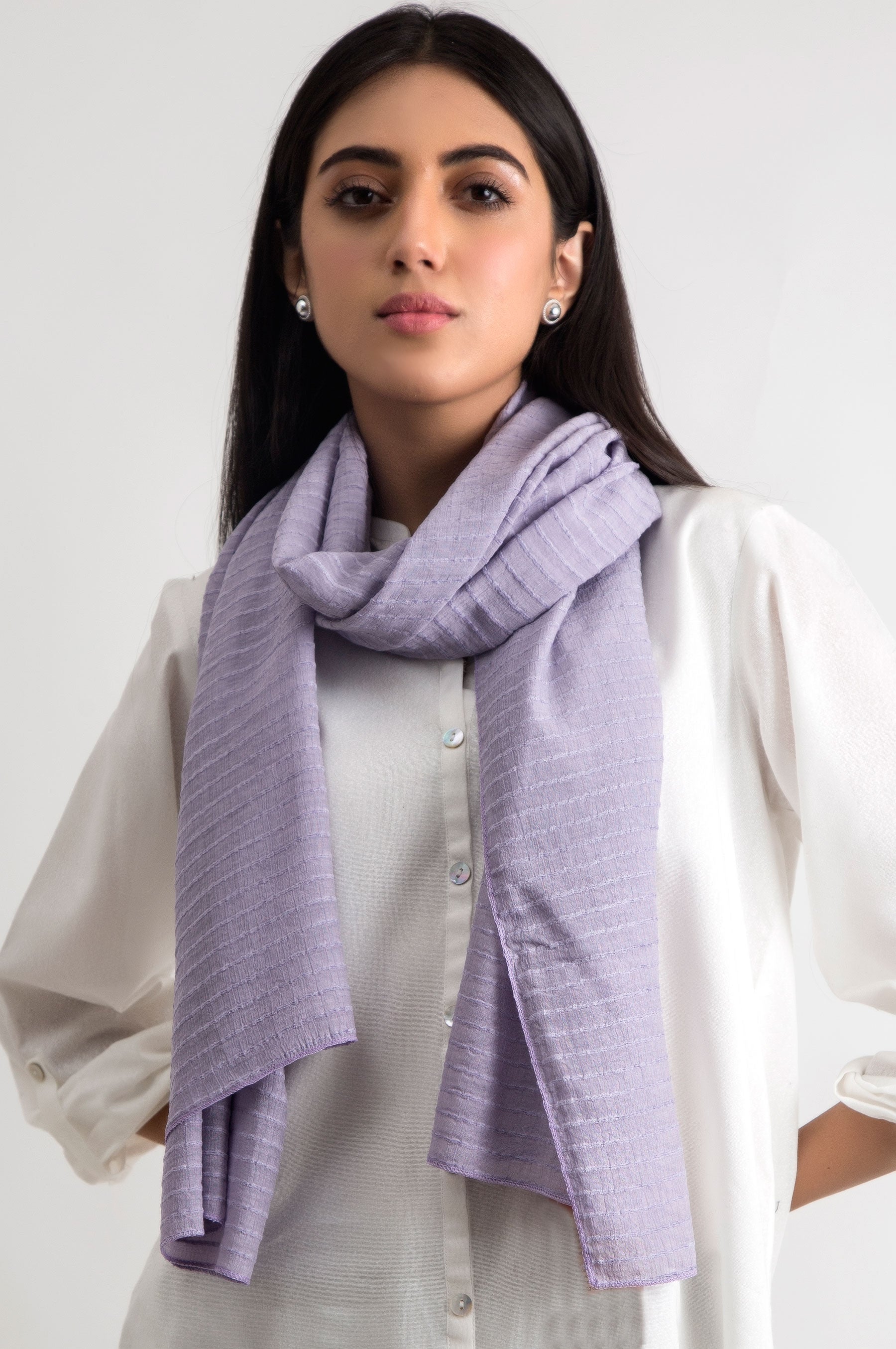 A cozy scarf with woven stripes on viscose is ready to give you a chic summer style