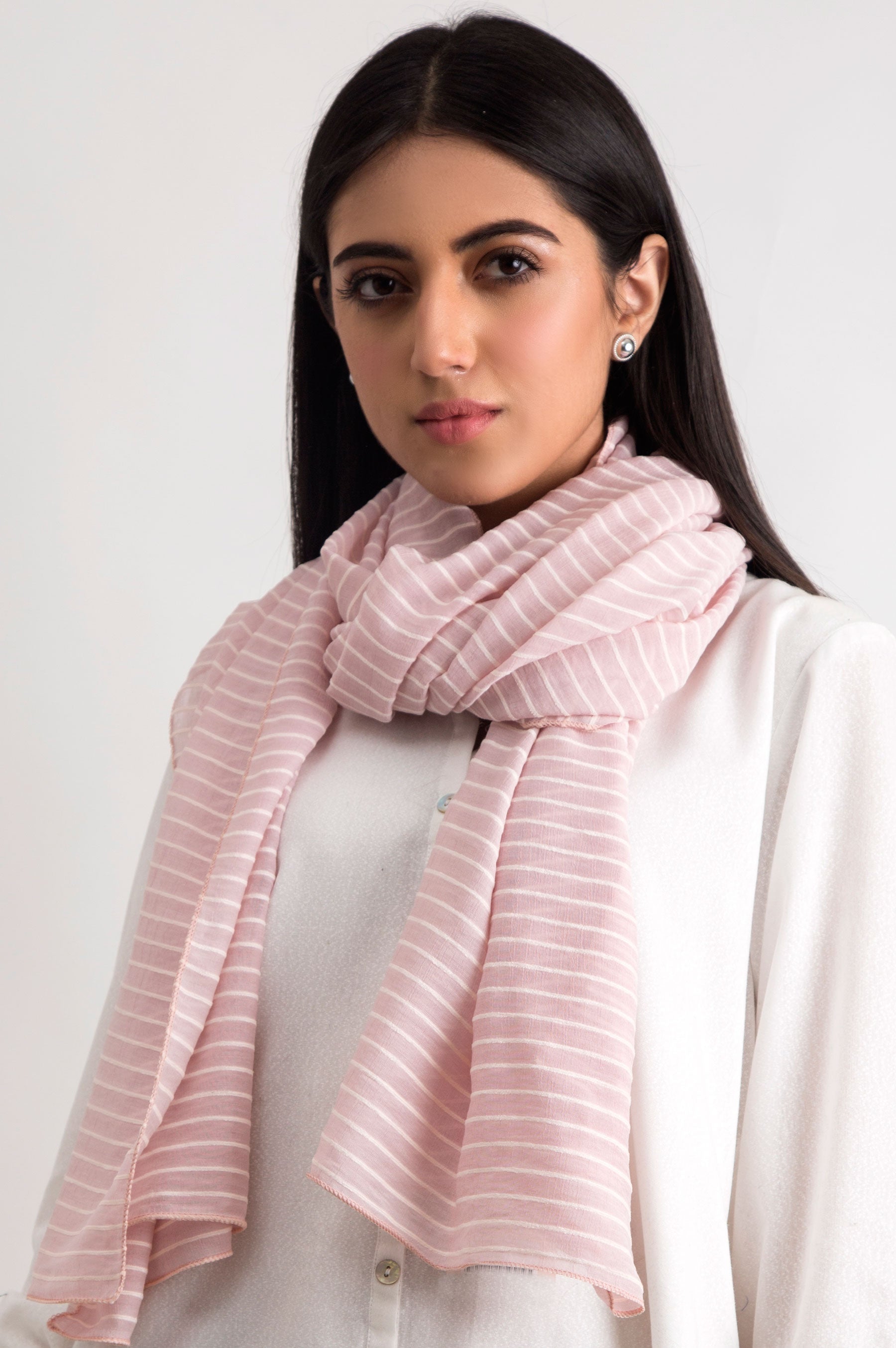 A cozy scarf with woven stripes on viscose is ready to give you a chic summer style