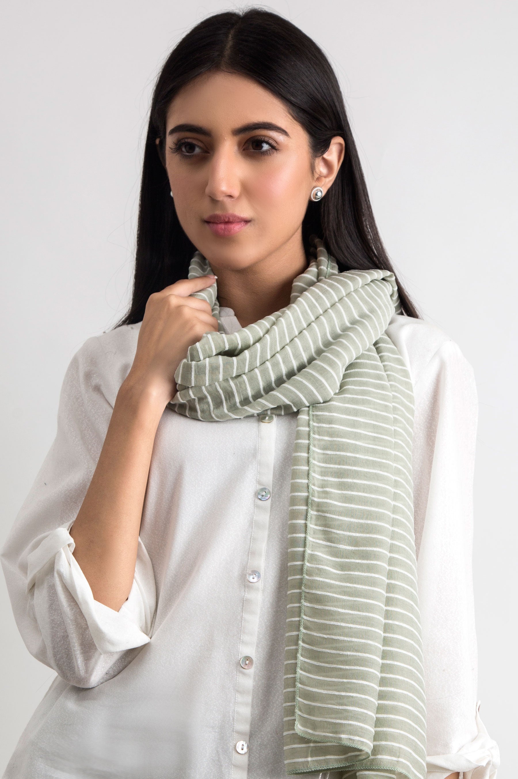 A cozy scarf with woven stripes on viscose is ready to give you a chic summer style
