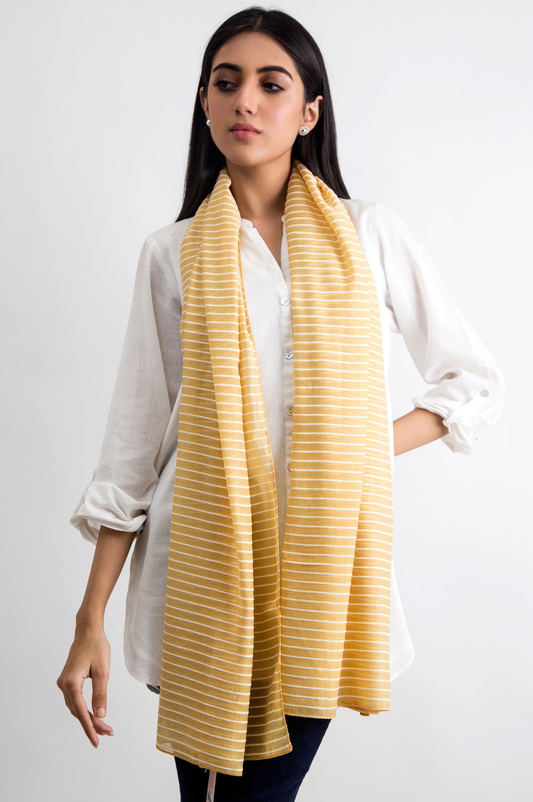 A cozy scarf with woven stripes on viscose is ready to give you a chic summer style