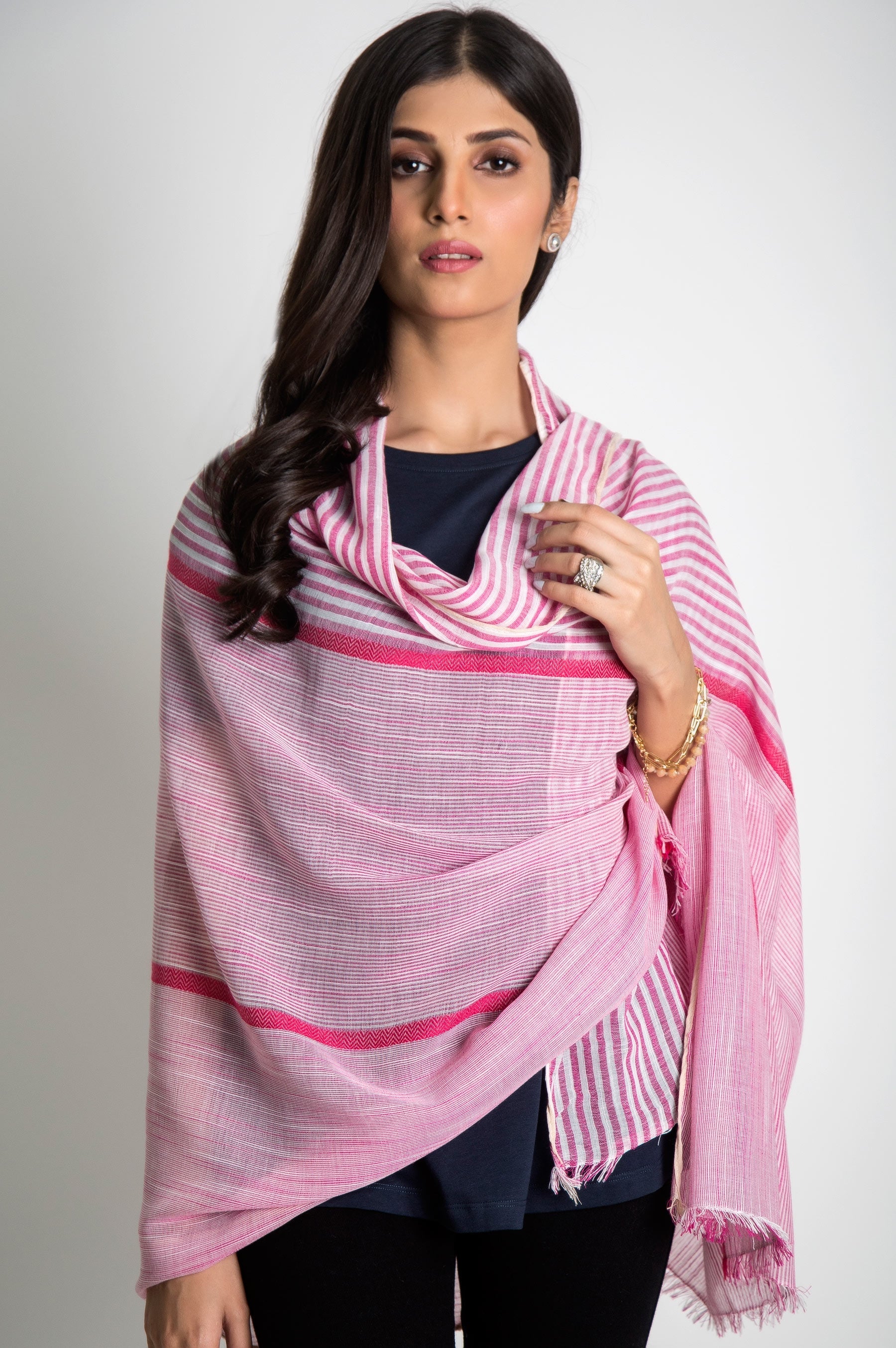 A cozy striped scarf with a pop of color that gives you a chic and edgy summer style.