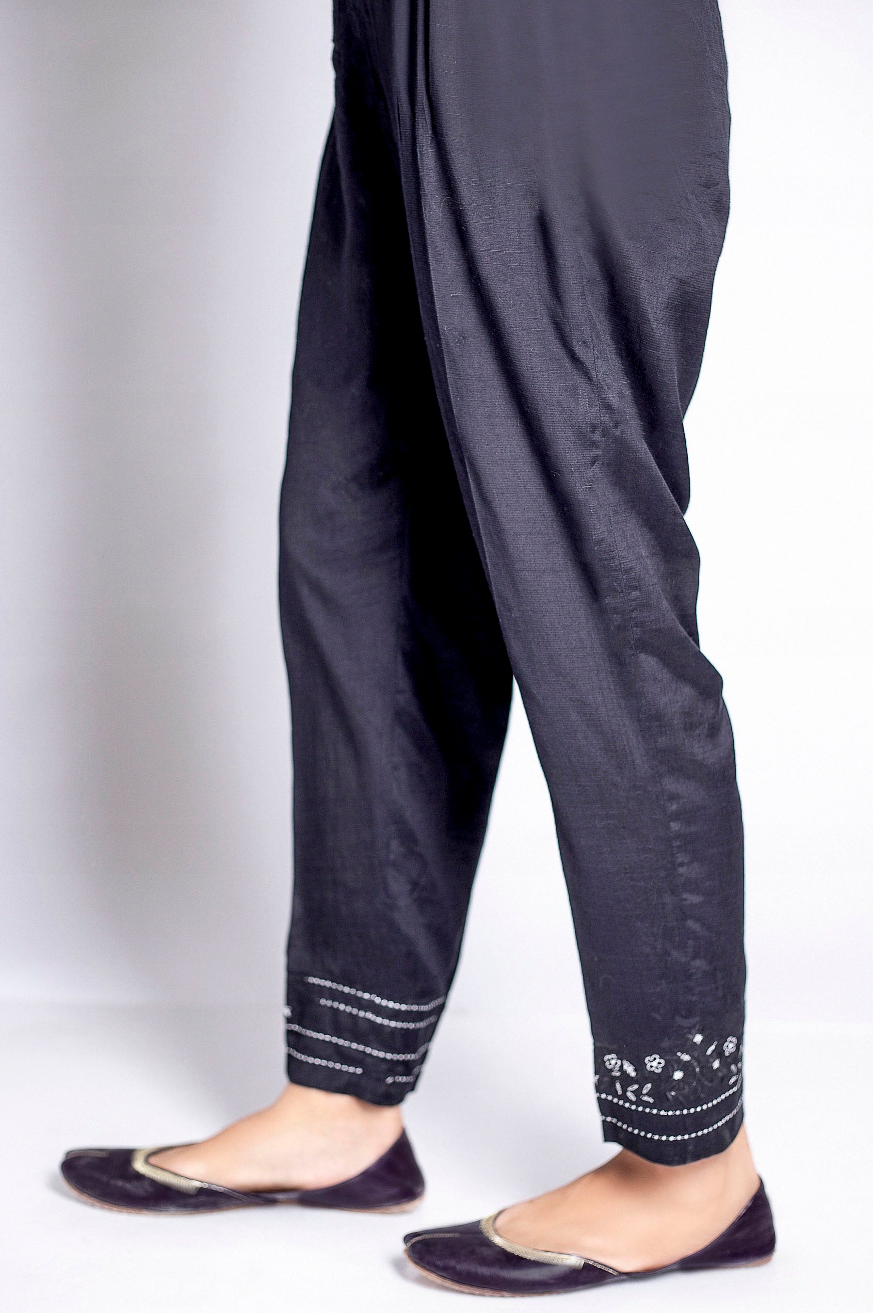 Zeen Embroidered Cigarette Pant, Raw Silk