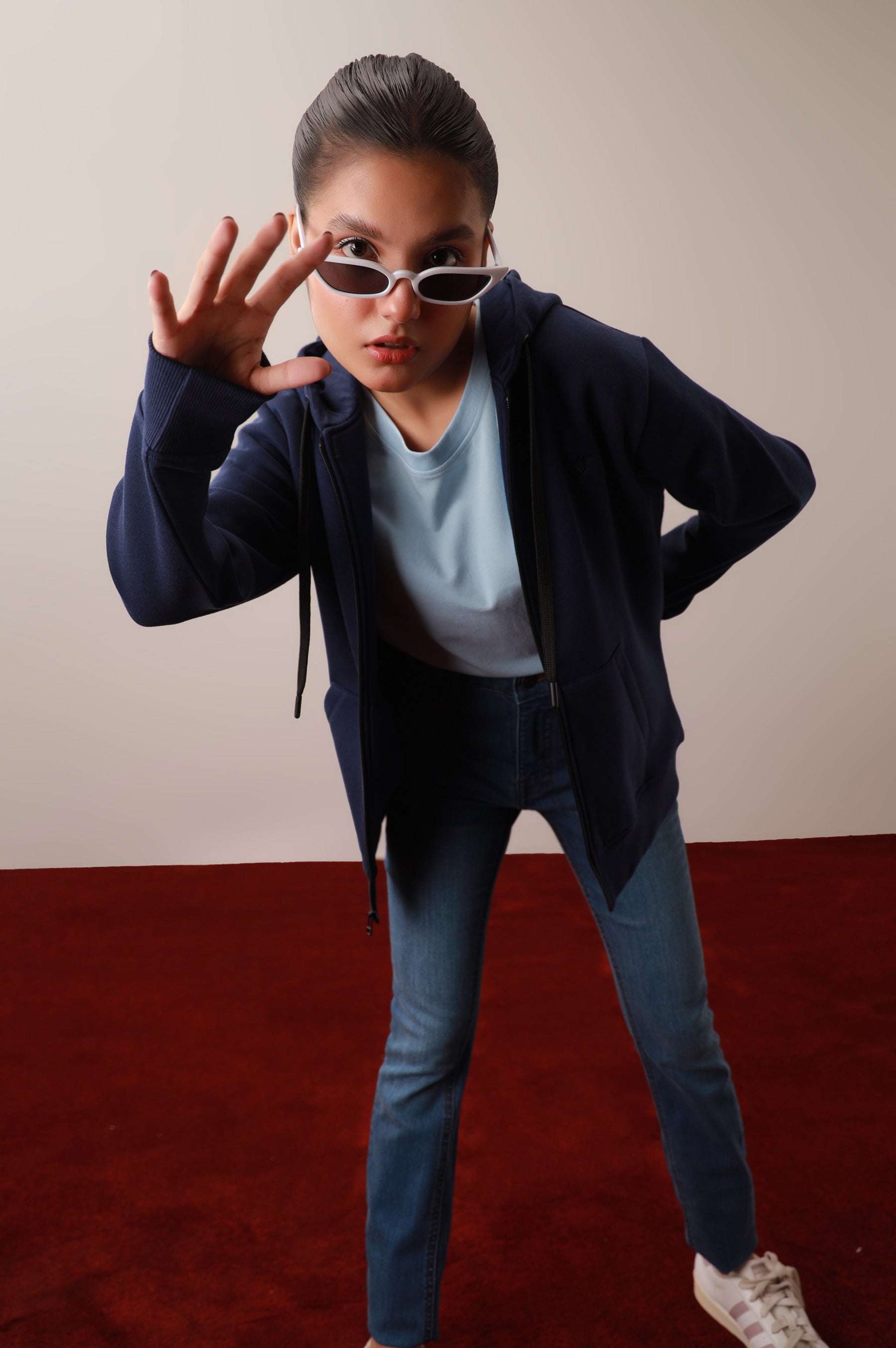 Refresh your wardrobe with this classy navy blue short-length zipper hoodie to give a dapper look in this winter season.